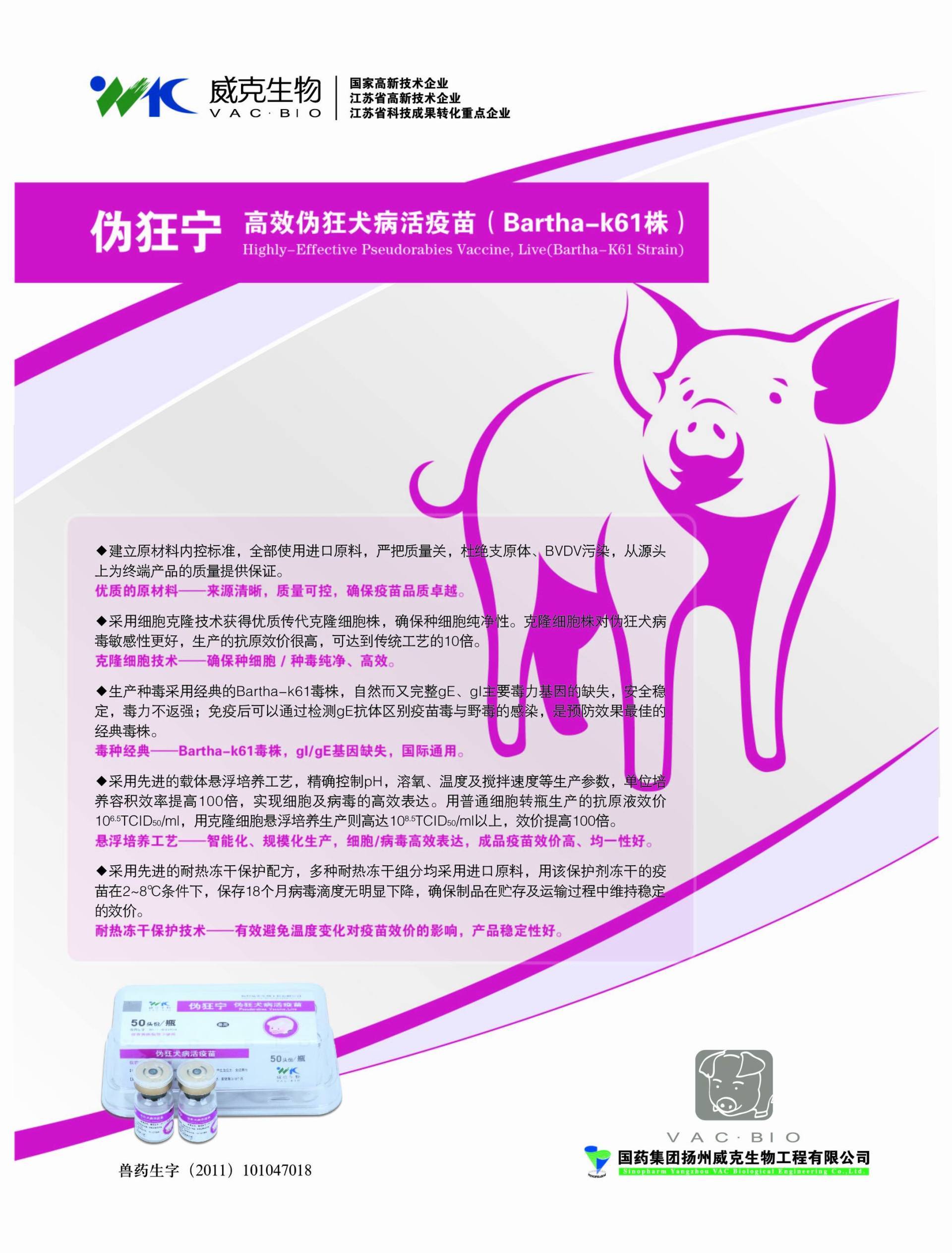 英文名 Highly-Effective Pseudorabies Vaccine,Live(Bartha-K61 Strain)